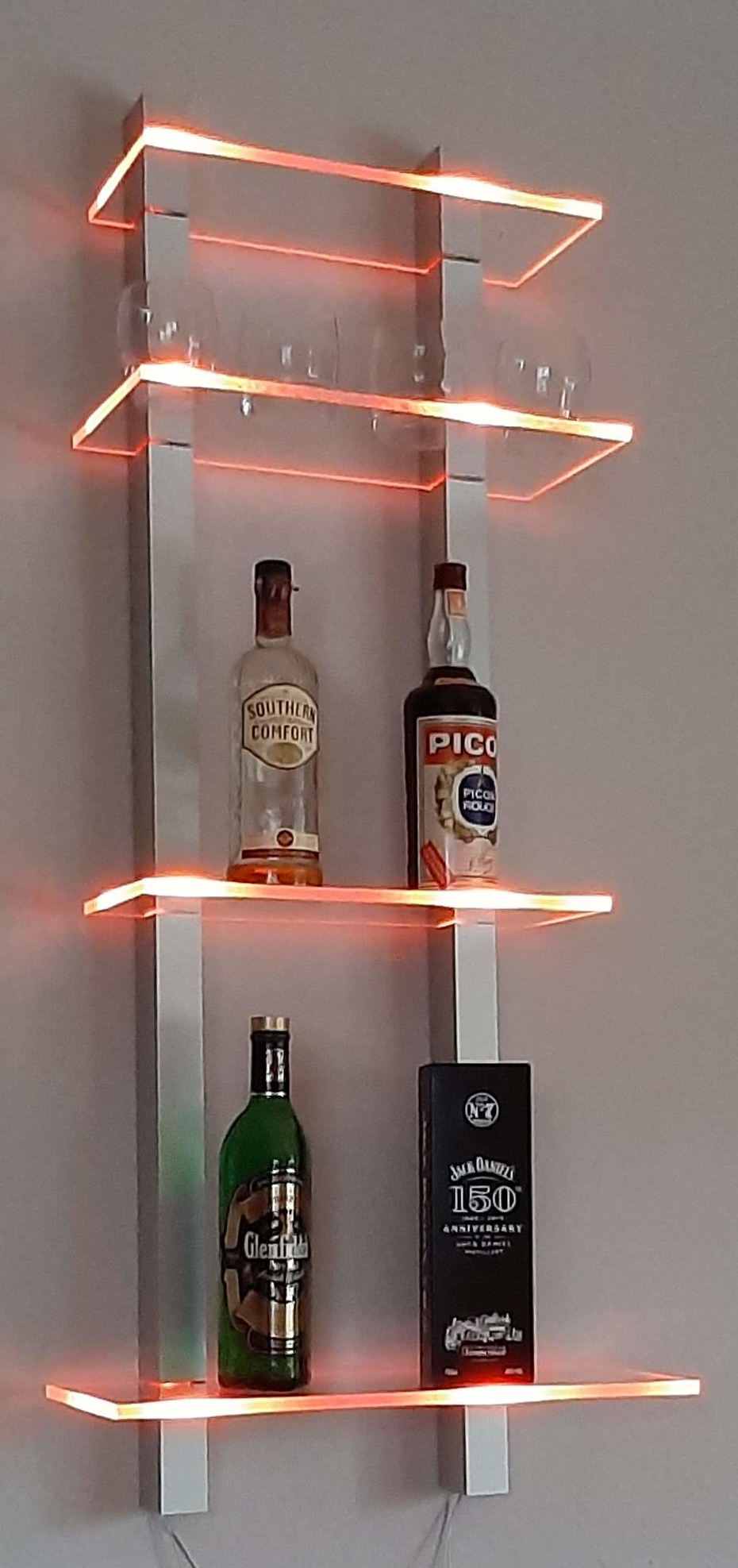 Erhältlich in silber oder schwanz eloxiert, Beleuctung wählbar als Einzelfarbe oder RGB mit Funkfernbedienung